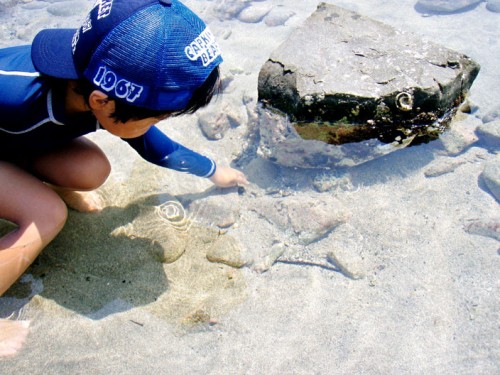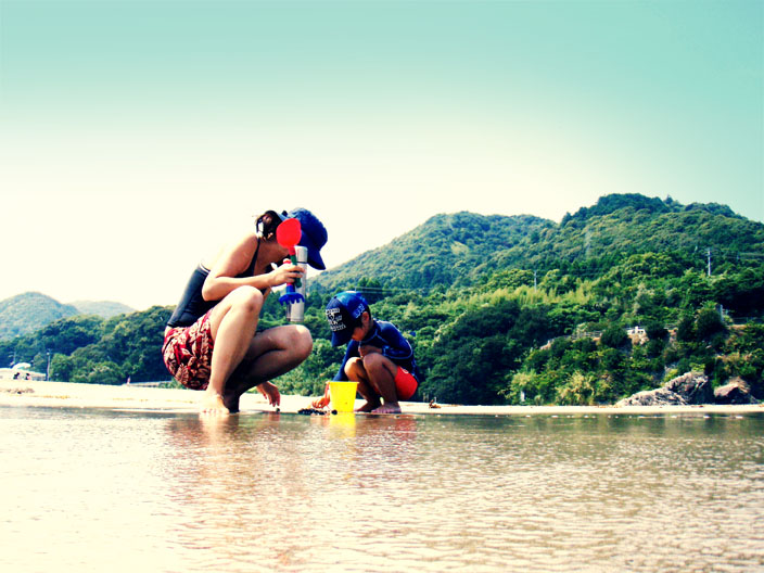 「休憩しよう!」と言うまで、夢中でカニやエビ、貝を穫っています。